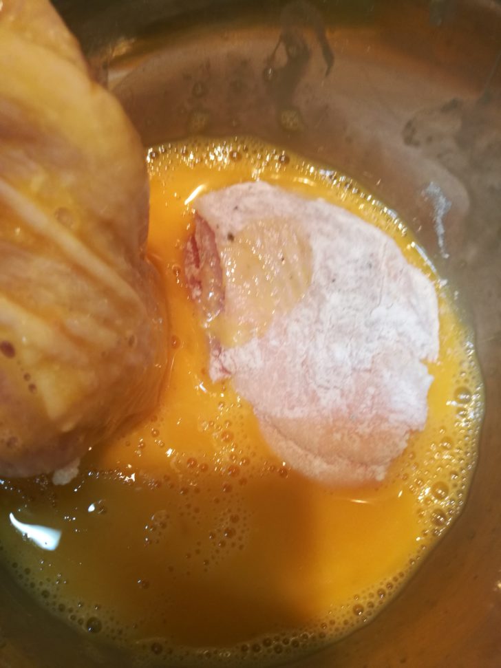 - 溶き卵にくぐらせる。