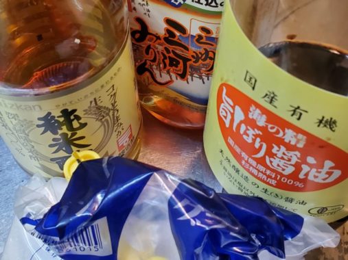 - 甘味料(甘草・人工甘味料・ぶとう糖液・砂糖)が入っている醤油を使う際には、砂糖又はみりんの量・または両方を減らします。